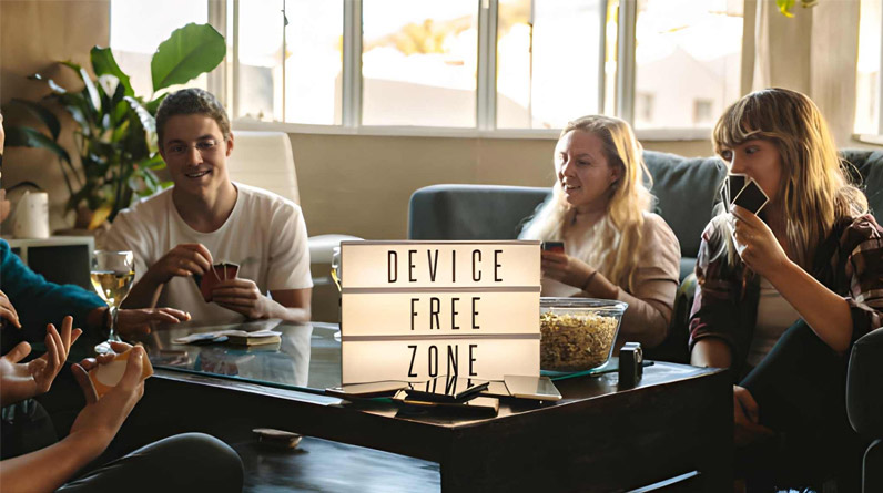 1. Tech-free zones: Designate areas like bedrooms and dining tables as device-free spaces
